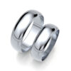 Klasyczne obrączki ślubne, wykonane z białego złota próby 585, hartowane, wypolerowane na wysoki połysk. Profil zaokrąglony o szerokości 5 mm i wysokości 1,3 mm.