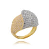 Jako ozdobę, pierścionek posiada kamienie w formie cyrkonii, które dodają mu blasku i elegancji. Cyrkonia jest popularnym zamiennikiem diamentu, dzięki swojej pięknej połyskującej powierzchni.
