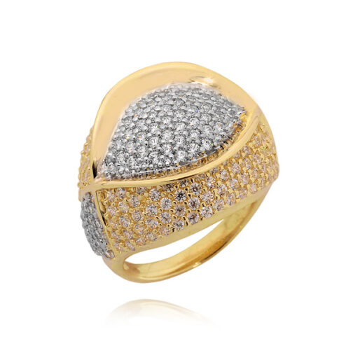 Jako ozdobę, pierścionek posiada kamienie w formie cyrkonii, które dodają mu blasku i elegancji. Cyrkonia jest popularnym zamiennikiem diamentu, dzięki swojej pięknej połyskującej powierzchni.