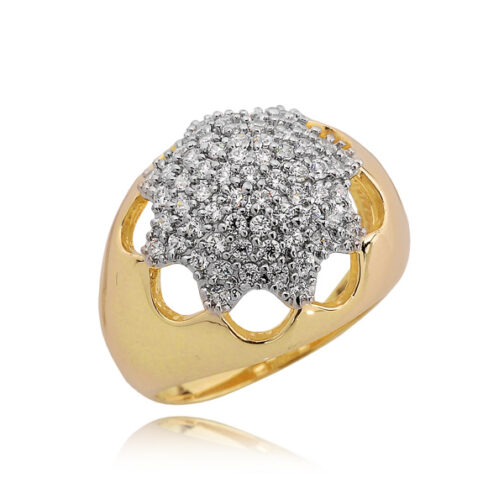 Jako ozdobę, pierścionek posiada kamienie w formie cyrkonii, które dodają mu blasku i elegancji. Cyrkonia jest popularnym zamiennikiem diamentu, dzięki swojej pięknej połyskującej powierzchni.