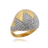 Jako ozdobę, pierścionek posiada kamienie w formie cyrkonii, które dodają mu blasku i elegancji. Cyrkonia jest popularnym zamiennikiem diamentu, dzięki swojej pięknej połyskującej powierzchni.