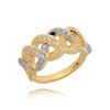 Jako ozdobę, pierścionek posiada kamienie w formie cyrkonii, które dodają mu blasku i elegancji. Cyrkonia jest popularnym zamiennikiem diamentu, dzięki swojej pięknej połyskującej powierzchni.
