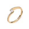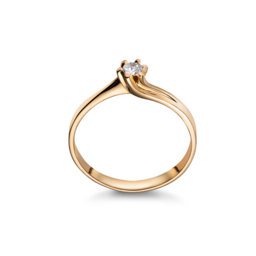 Pierścionek zaręczynowy z centralnie oprawionym diamentem o masie 0,10 ct, wysokiej czystości i barwie Si2/H oraz doskonałym szlifie brylantowym, średnica brylantu wynosi 3,00 mm.