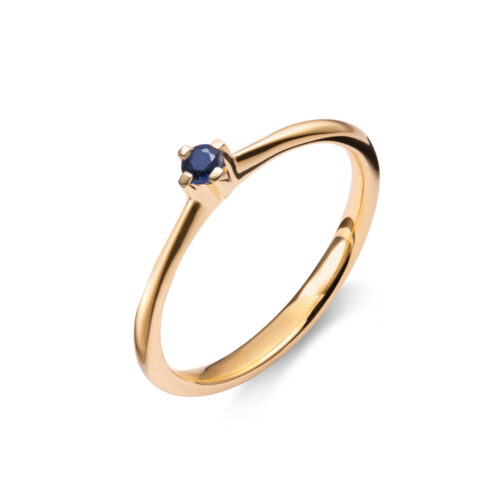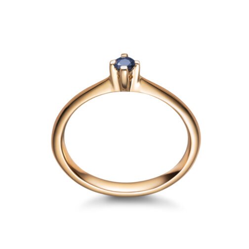 Pierścionek zaręczynowy z centralnie oprawionym szafirem o masie 0,15 ct, wysokiej czystości VS , średnica szafiru wynosi 3,00 mm.